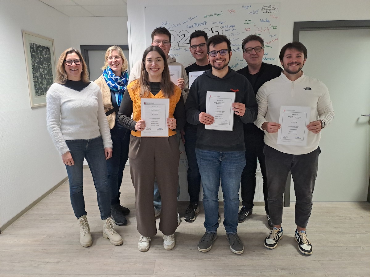 Zum Ende des ersten Schulhalbjahres 2025/26 haben fünf LiVD erfolgreich die Zusatzqualifikation Gesellschaftswisschaften mit einem Kolloquium abgeschlossen und ihre Zertifikate vom Ausbilderteam überreicht bekommen.