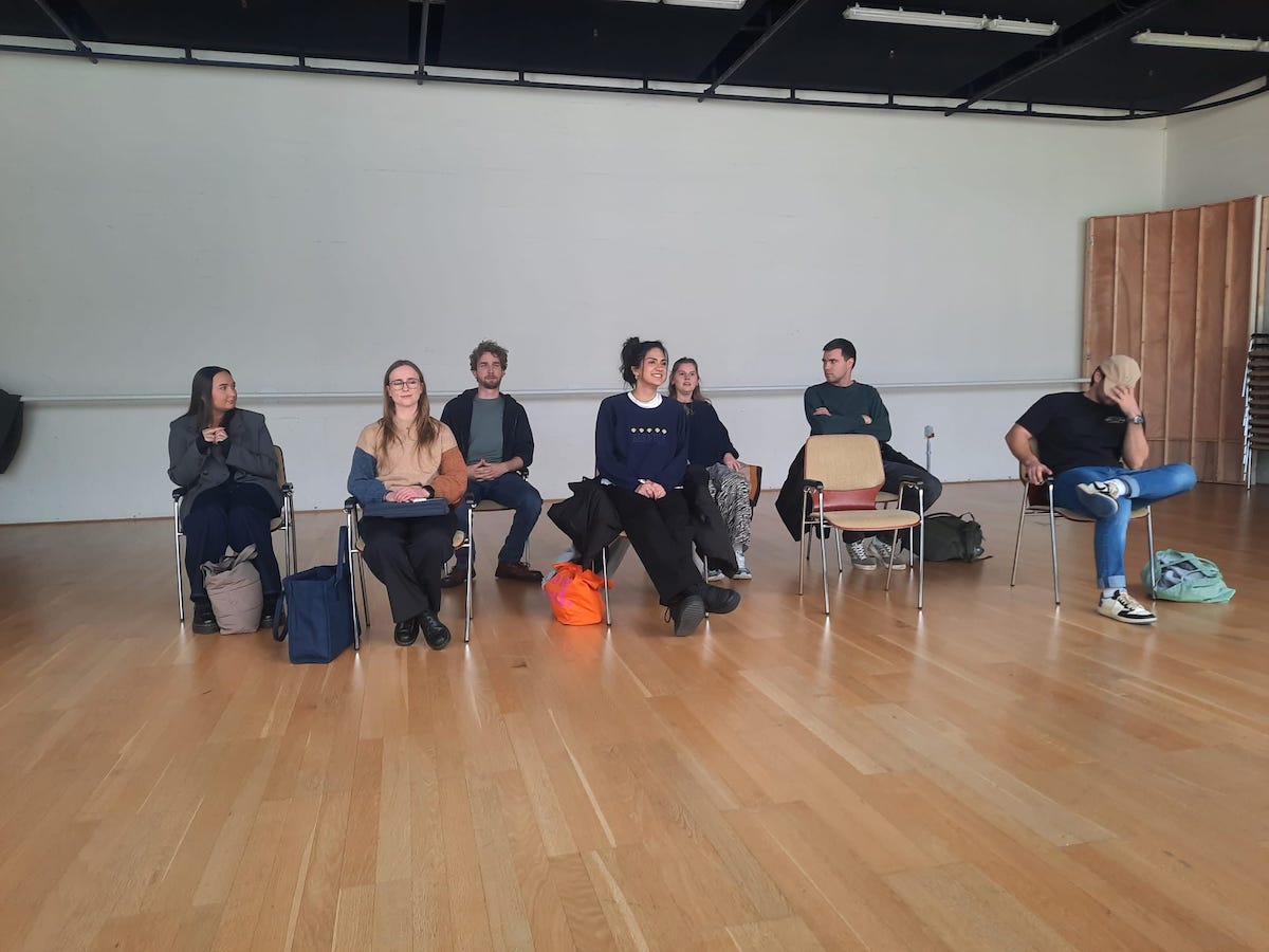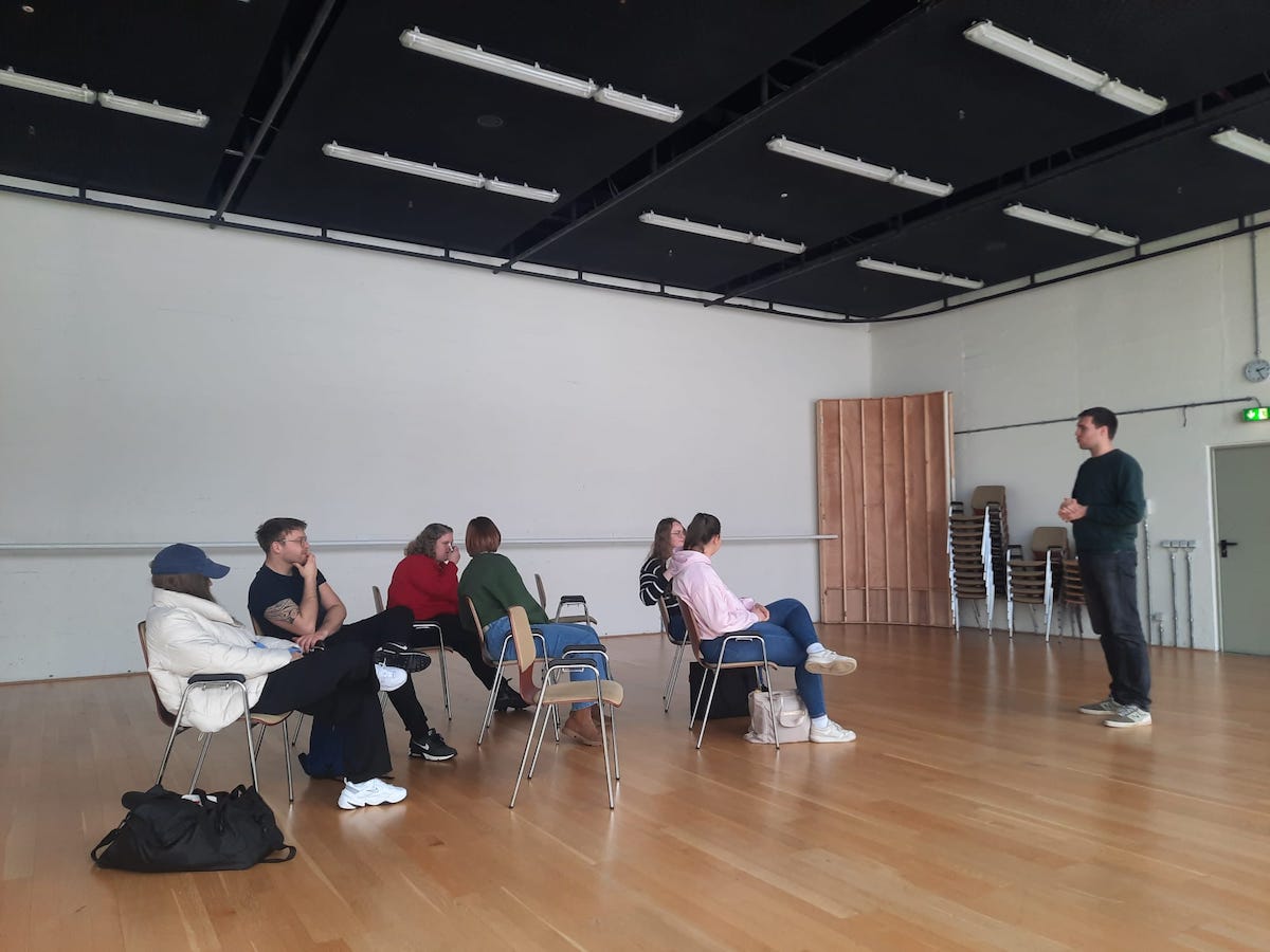 Diese und letzte Woche hat das pädagogische Seminar des mittleren Jahrgangs (08/25) einen Workshop zum Thema Körpersprache und Stimmführung im Wolfsburger Sharoun Theater besucht.